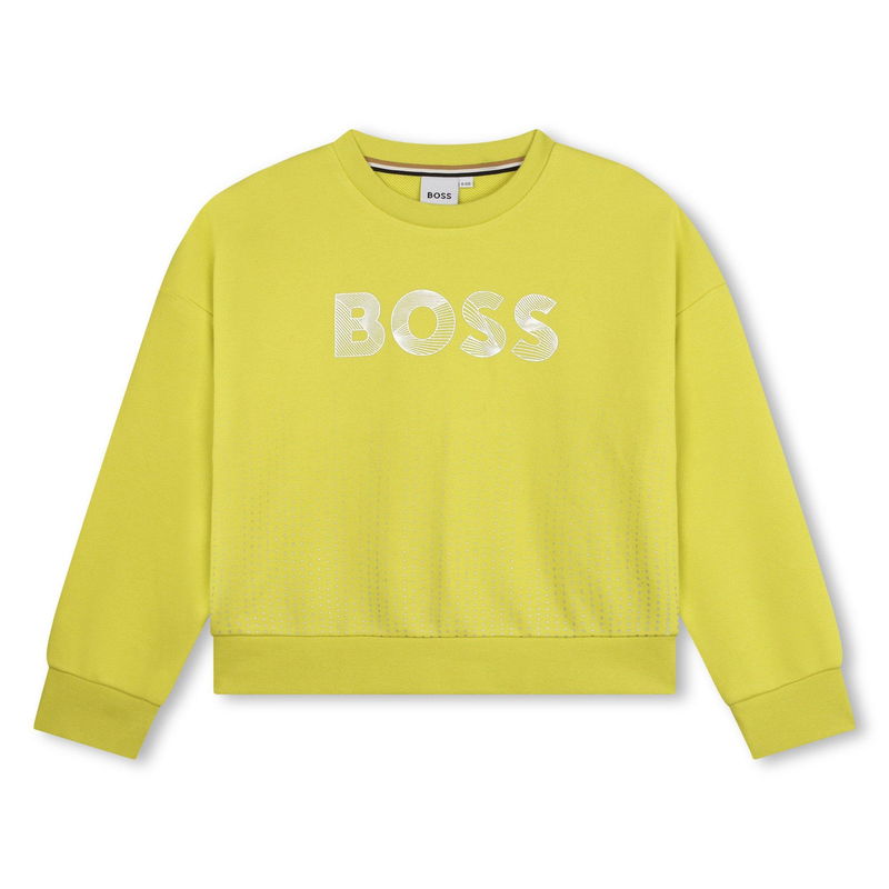 The BOSS Logo Crew is a comfortable junior's jumper that features house branding. This crew-neck sweatshirt offers classic style and comfort for everyday wear.