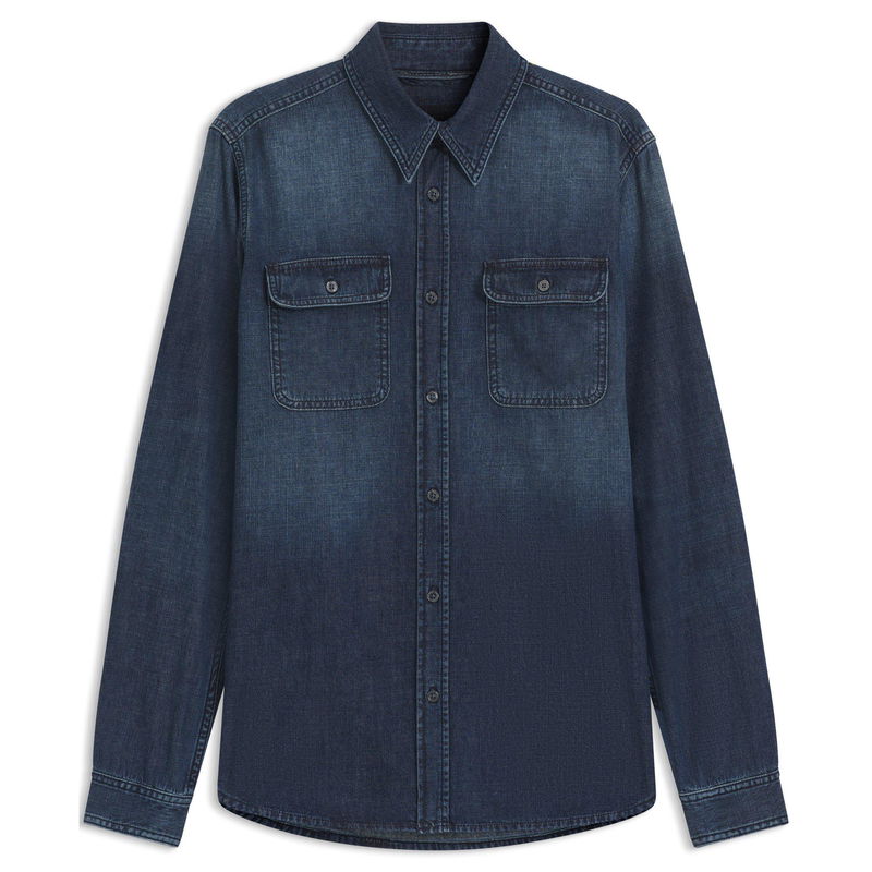 Men's Double Breasted Cotton Long Sleeve Denim Shirt