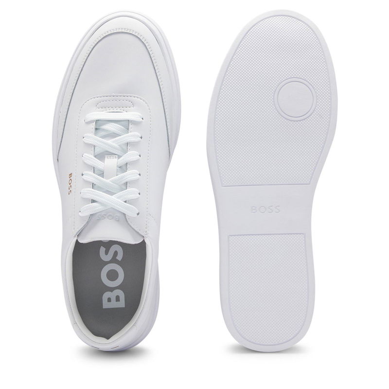A streamlined shape meets contemporary design in BOSS's Kieran Tennis trainers. These low-profile trainers feature an aesthetic that complements various outfits, delivering a look of understated style.