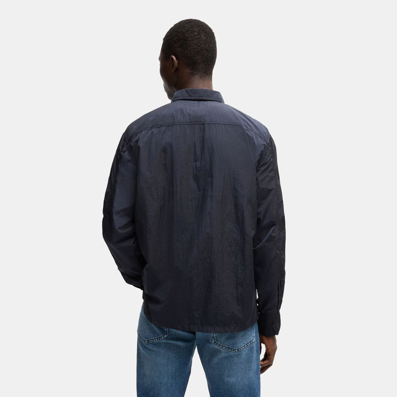 The BOSS Leejay1M Overshirt offers a smart solution for seasonal transitions. This adaptable piece functions as both a lightweight jacket and a smart top, featuring a sleek cut that bridges the gap between casual and dressier styling with BOSS detailing for contemporary fashion appeal.