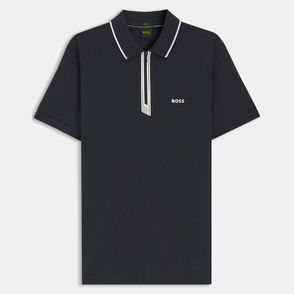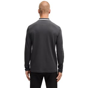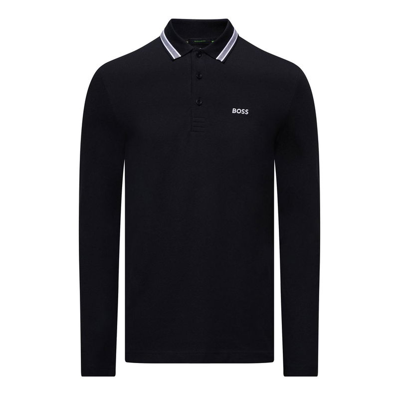 Mens BOSS Plisy Long Sleeve Cotton Piqu, Polo Shirt with Contrast Logo in dark blue With its straight fit and soft cotton piqu, this BOSS Menswear polo shirt is so easy to style. Contrast logo on the left chest.