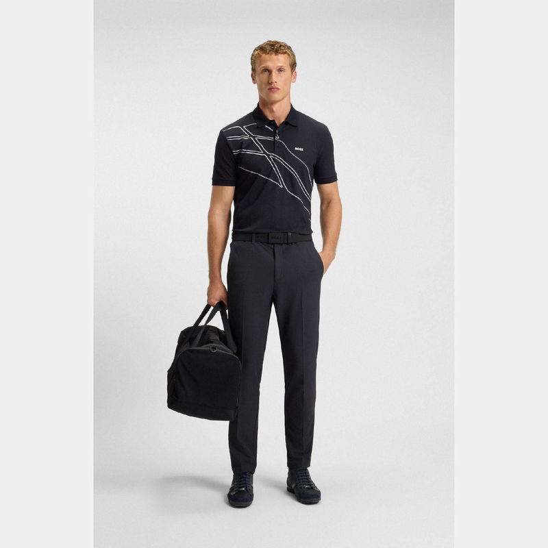 Mens BOSS T Commuter Regular Fit Trousers in Water Repellent Stretch Fabric in dark blue.