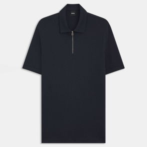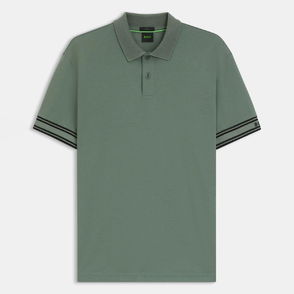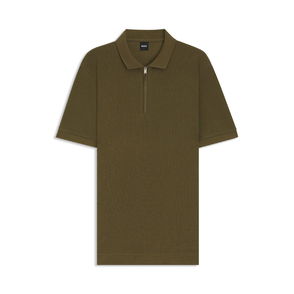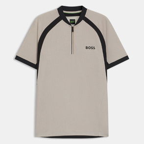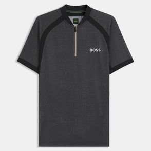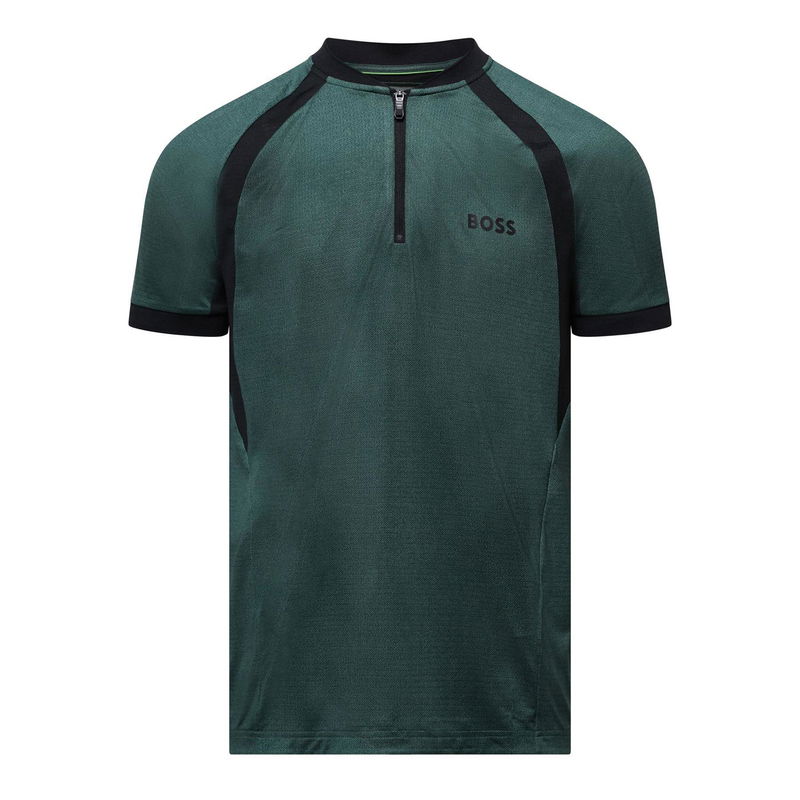 Mens BOSS PL_TOC Matchball Mesh Jersey Slim Fit Polo Shirt with Zip Neck in open green. Cut to a clean fit in moisture-managing stretch mesh this BOSS Menswear polo has a modern zip placket with a signature stripe. Printed logo.