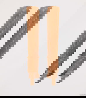 Developed in the 1970s, Bottega Veneta's artful Intrecciato technique guarantees the longevity of its leather goods. The Atomic knee-high boots are made in Italy from suede with the signature weaving and sit atop 50mm block heels.