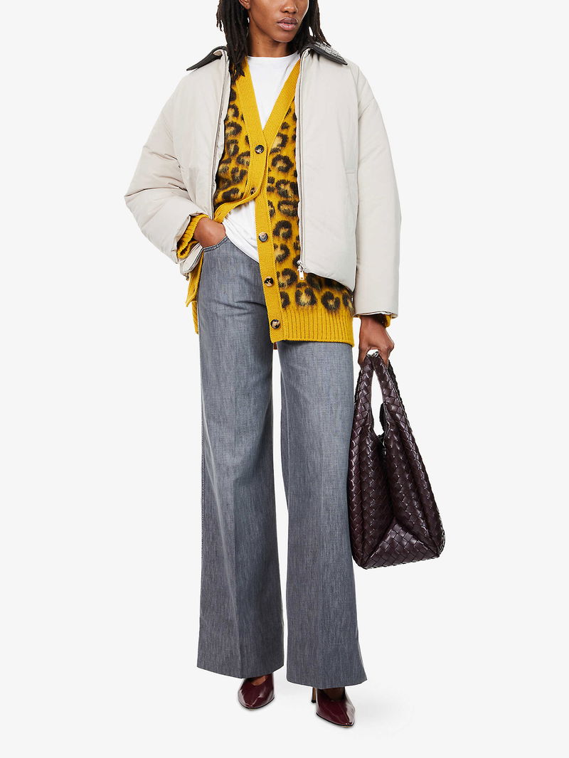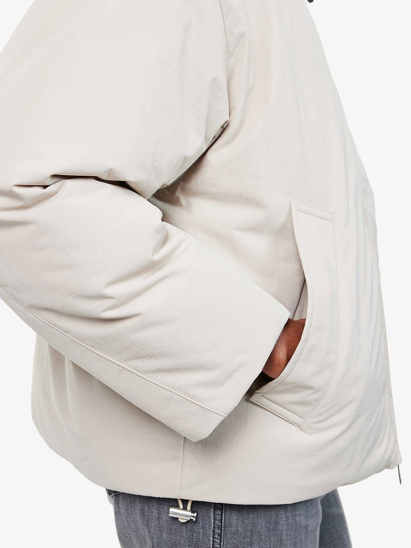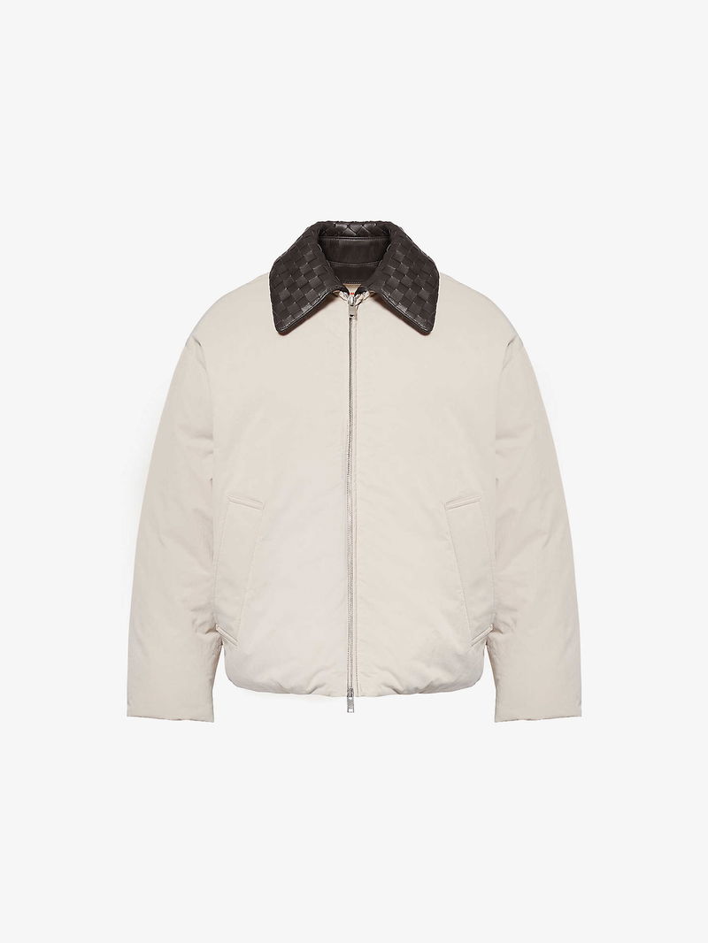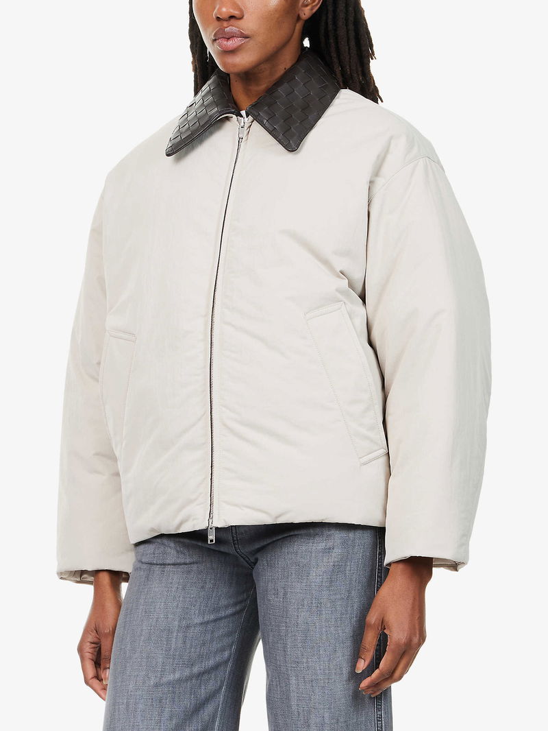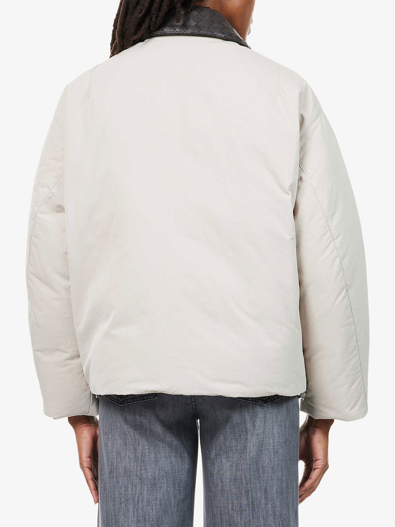 Leather-Collar Relaxed-Fit Woven-Down Jacket