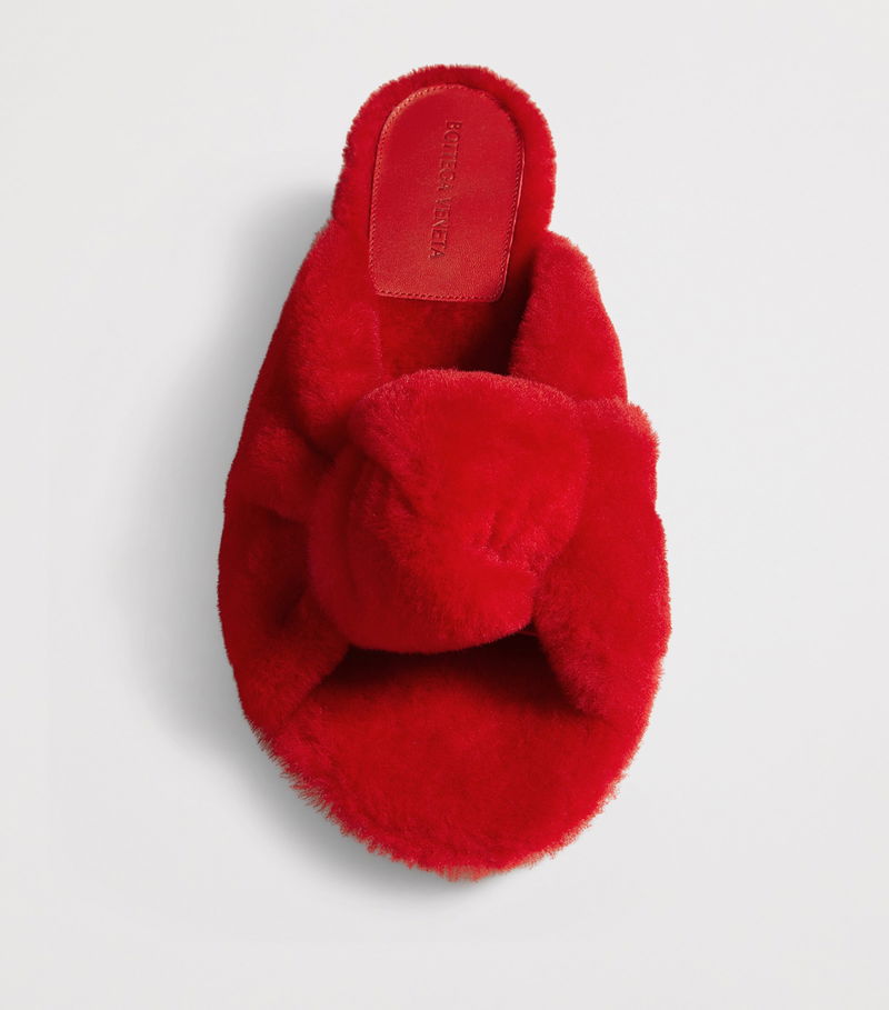 Pump up the volume in Bottega Veneta’s mules. Fuzzy shearling is manipulated into an oversized knot at the toe, while a sense of counterbalance is offered by way of the pencil-thin kitten heel.