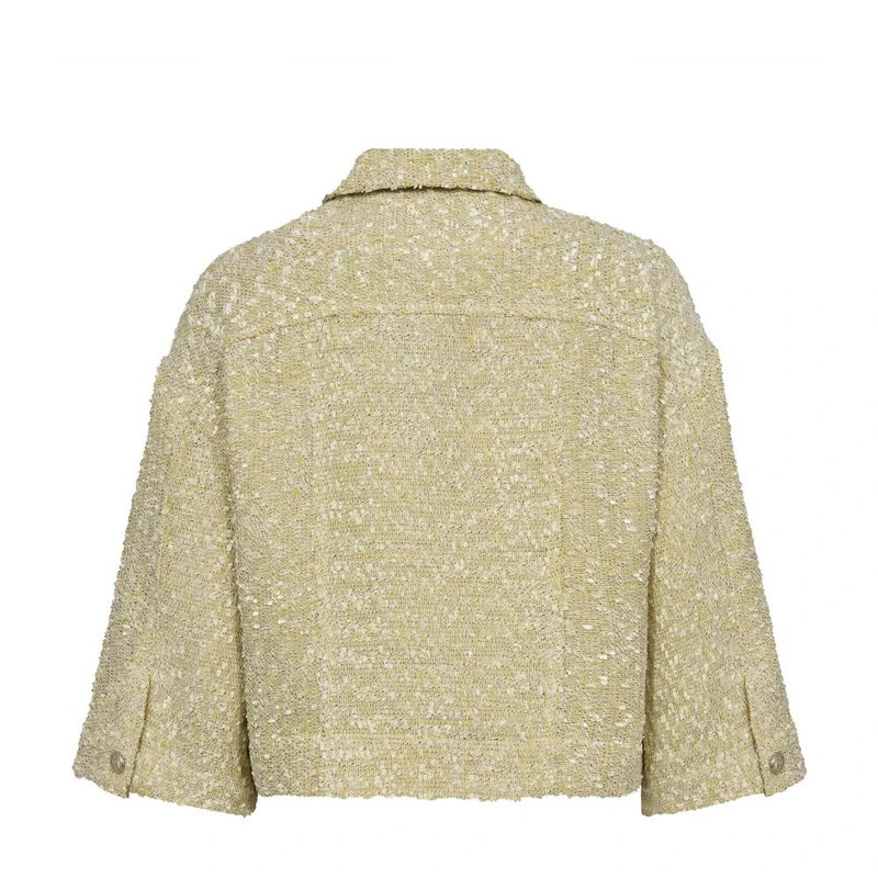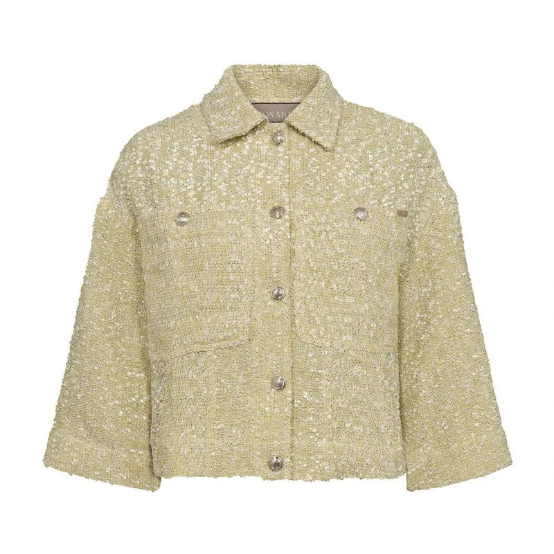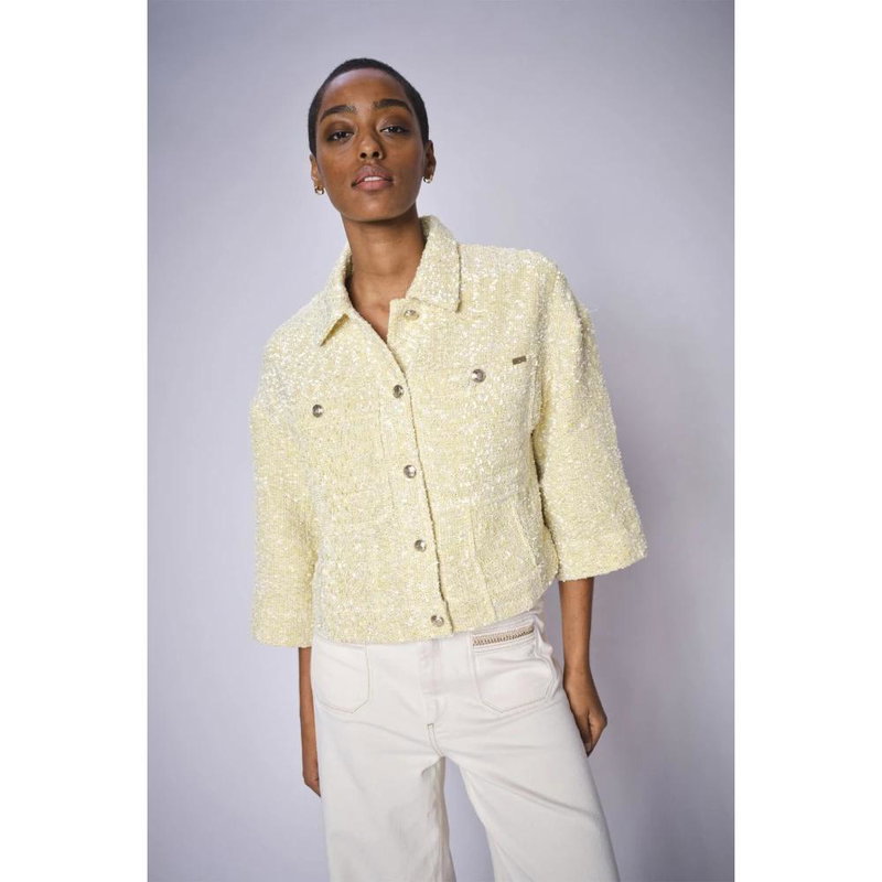 Elevate your style with this smart bouclé jacket from Mos Mosh, designed in a boxy, cropped fit. Featuring short sleeves, large chest pockets, and luxurious gold buttons for a refined touch. Pair it with high-waisted wide-leg jeans for a simple yet stylish outfit.