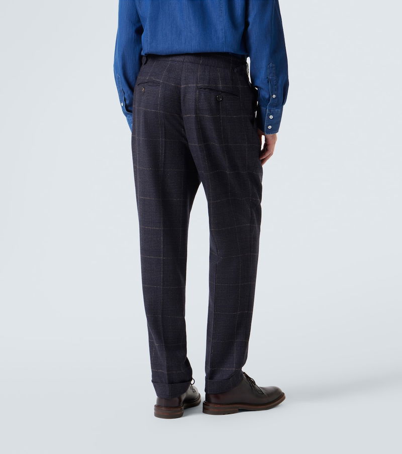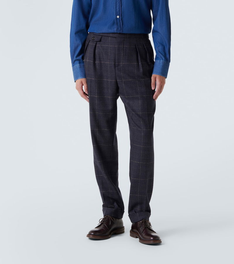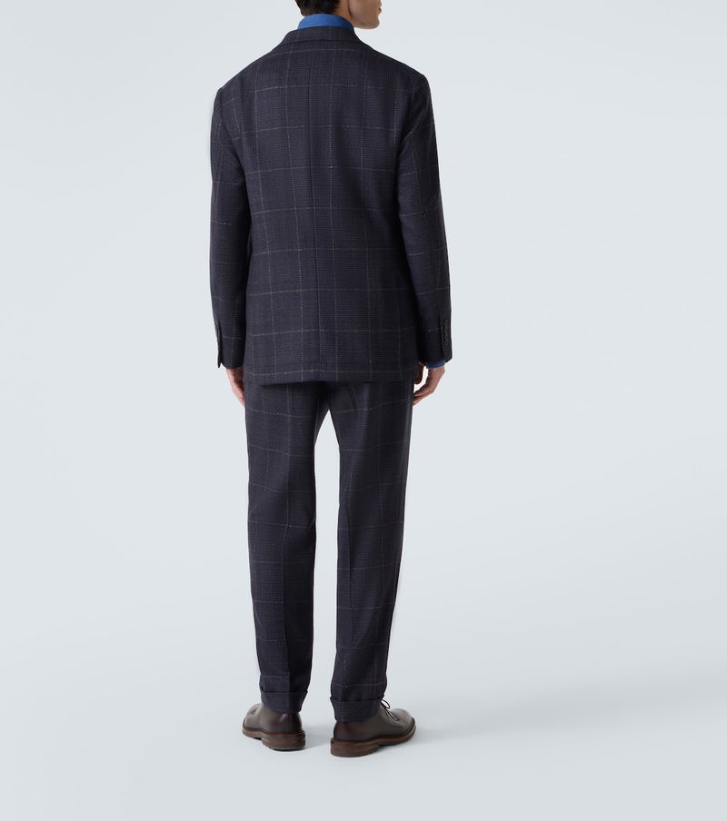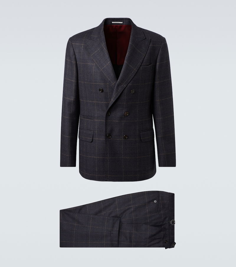 In a grey colorway, Brunello Cucinelli crafted this suit from a luxurious blend of cashmere and wool. With a checked motif, the style offers a single-breasted silhouette.