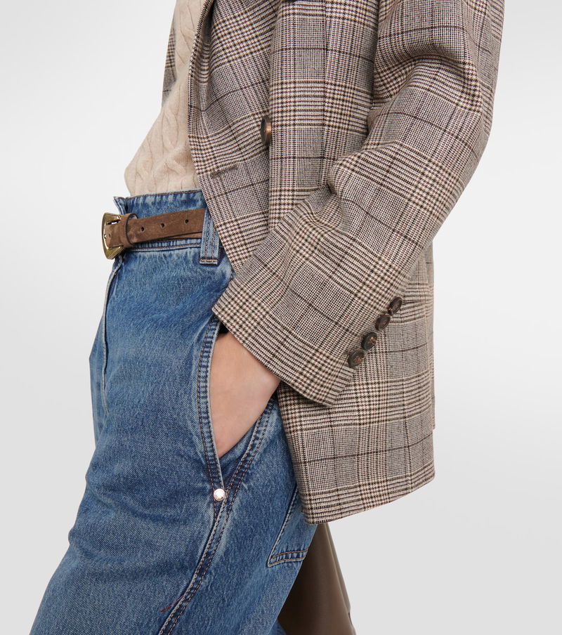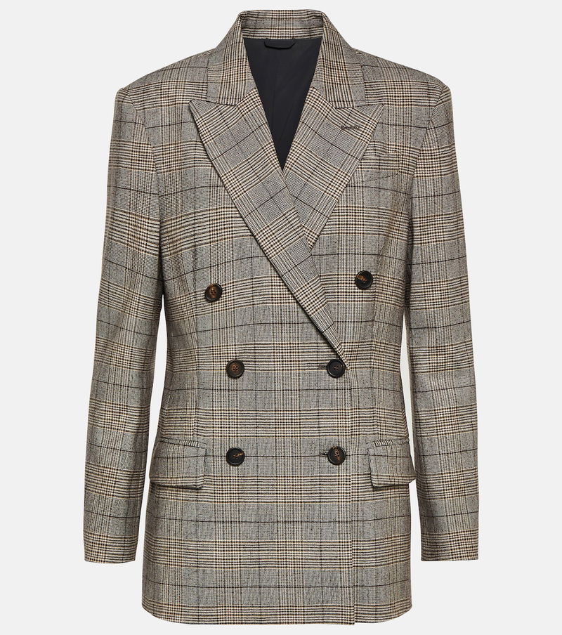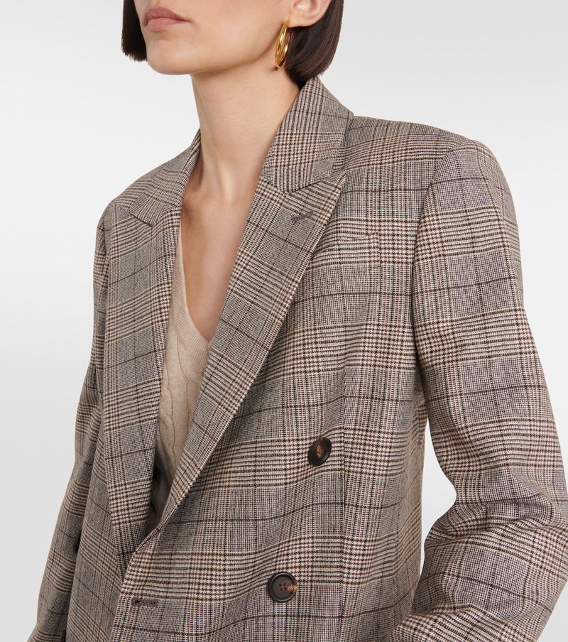 Each Brunello Cucinelli design is handmade in Solomeo, a medieval hamlet whose art and traditions are woven into the house's every fiber. Made from a wool-blend, this checked blazer features a double-breasted front and flap pockets in the front.