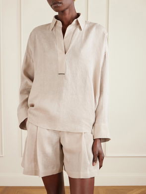 Brunello Cucinelli’s minimal basics and casual wear are elevated by luxury materials in sophisticated neutral tones and elegant details. From crisp cotton shirts, cashmere sweater dresses and leather blazers to puffer coats and suede and shearling bags, shoes and boots, pieces balance a relaxed aesthetic with a timeless quality.