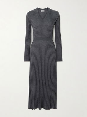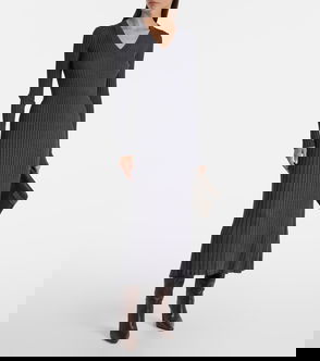 Brunello Cucinelli's dress is cut from a virgin wool-blend that's artfully draped and folded to highlight the waist. It's been made in the brand's hometown of Solomeo, Italy and has a round neckline traced with sparkling Monili beads, negating the need for a necklace.