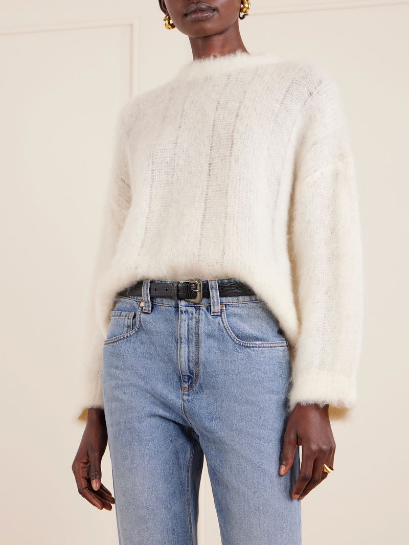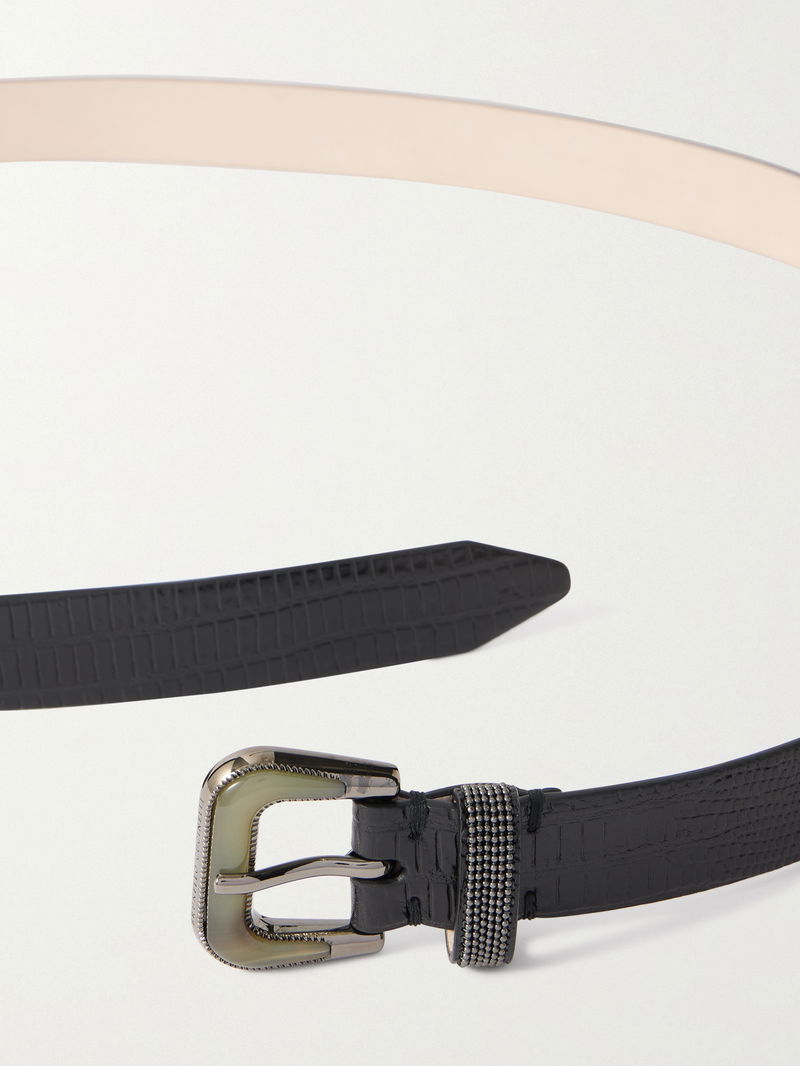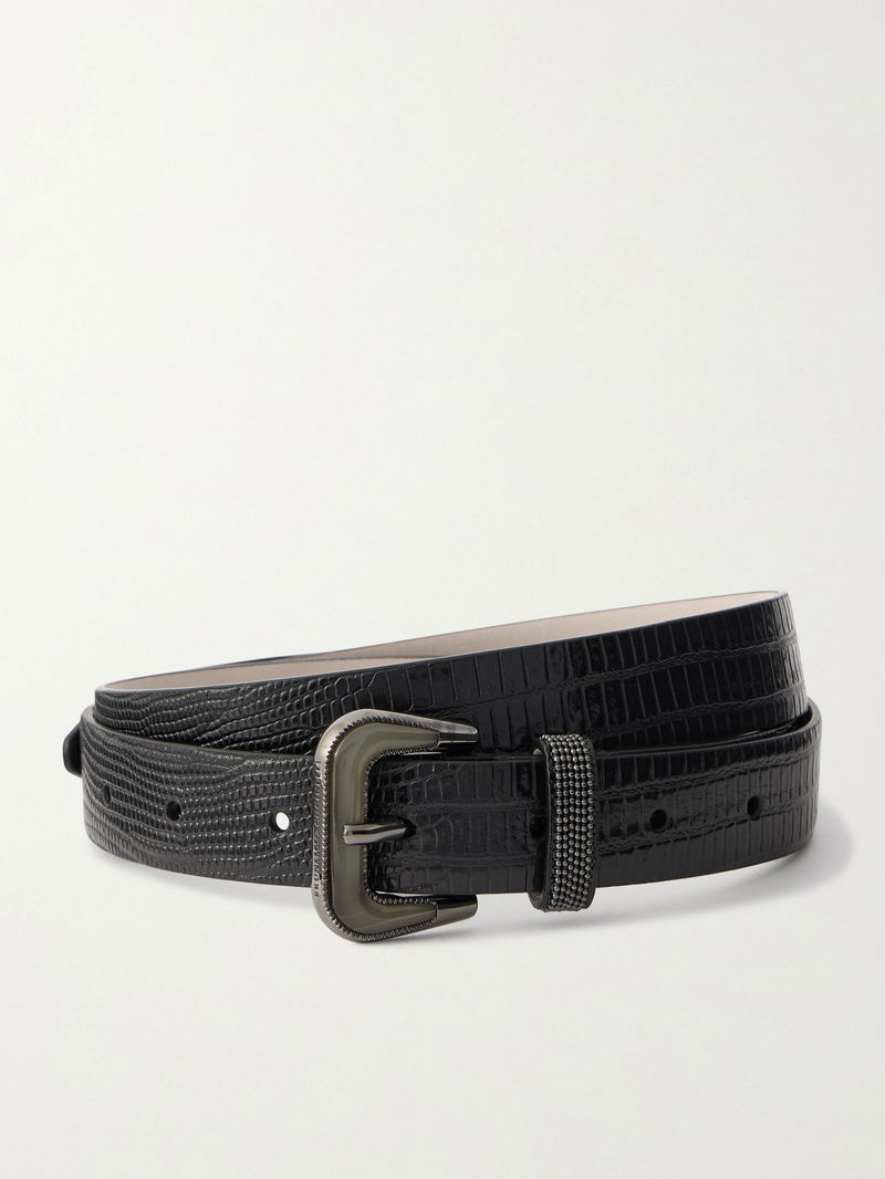 Brunello Cucinelli's belt has been impeccably crafted in Italy from lizard-effect patent-leather. Use it to cinch chunky sweaters or with high-rise jeans.