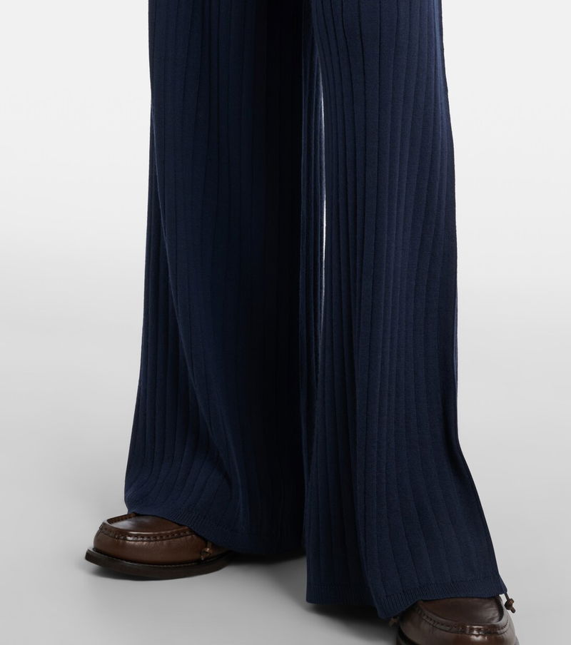 Ribbed-knit Wool And Cashmere Wide-leg Pants