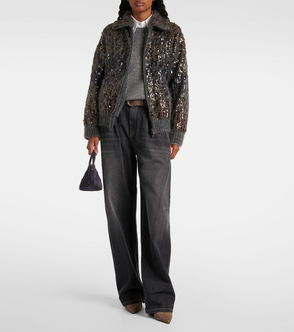Brunello Cucinelli's cardigan is flecked with tonal sequins for a touch of glamor. It's made from linen-blend in a breathable open-knit construction and patterned with classic stripes.