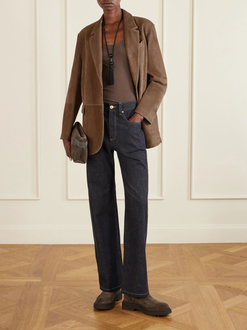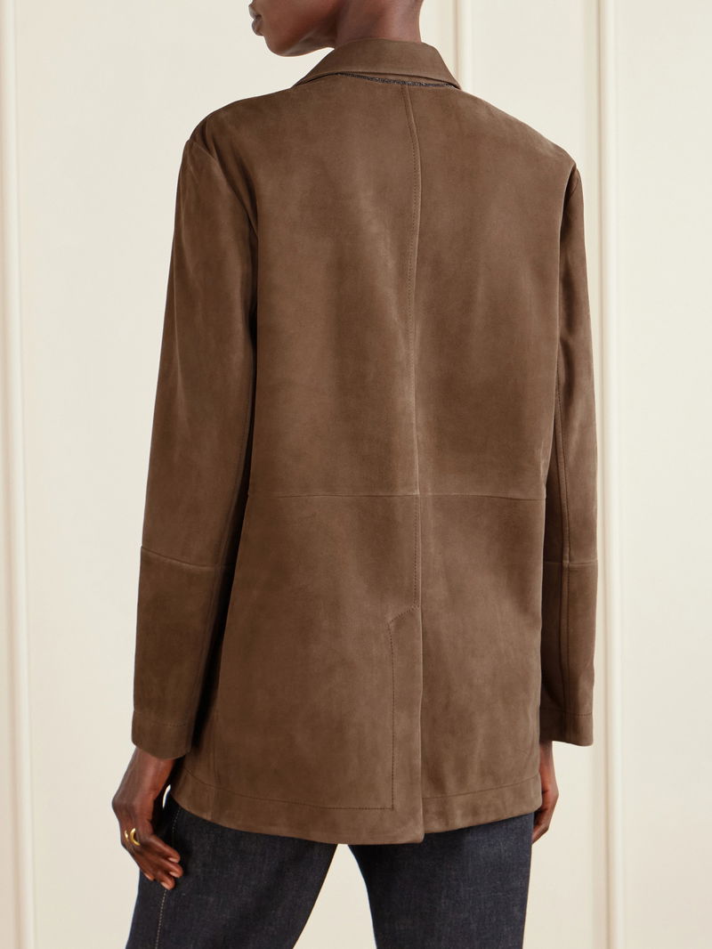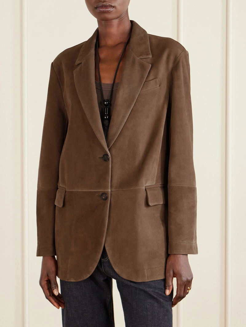 Brunello Cucinelli's blazer reinterprets a classic silhouette with a Western yet feminine touch. It's been tailored in Italy from the softest suede in a shade that'll go with plenty in your closet.