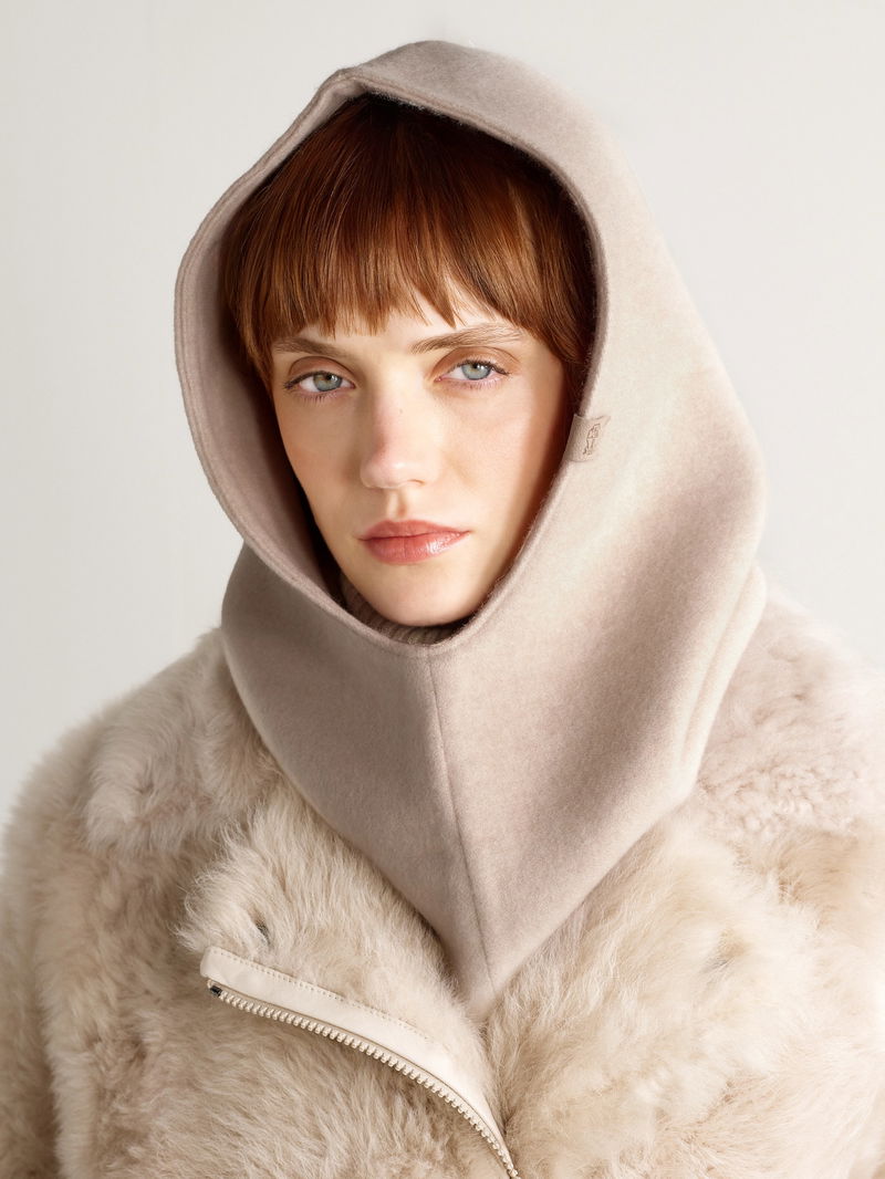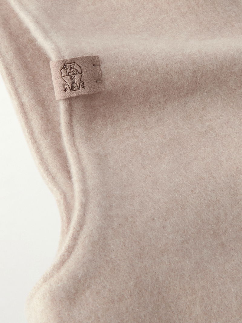 Brunello Cucinelli is celebrated for its exceptional knitwear, and this snood is a testament to that legacy. Spun from a sumptuous blend of wool and cashmere, it’s generously sized to drape elegantly around the face and neck.