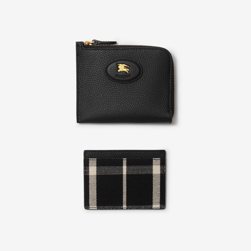 A slim zip wallet made in Italy from grainy calf leather with a matching card case in calico beige Burberry Check - the perfect pair for a handbag or an ideal gift. The Bloomsbury collection is finished with a leather and metal Knight stamp, an archival motif first seen on Burberry bags in the 1980s.