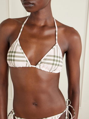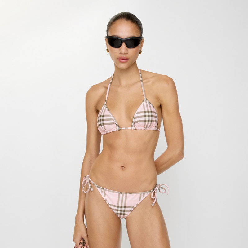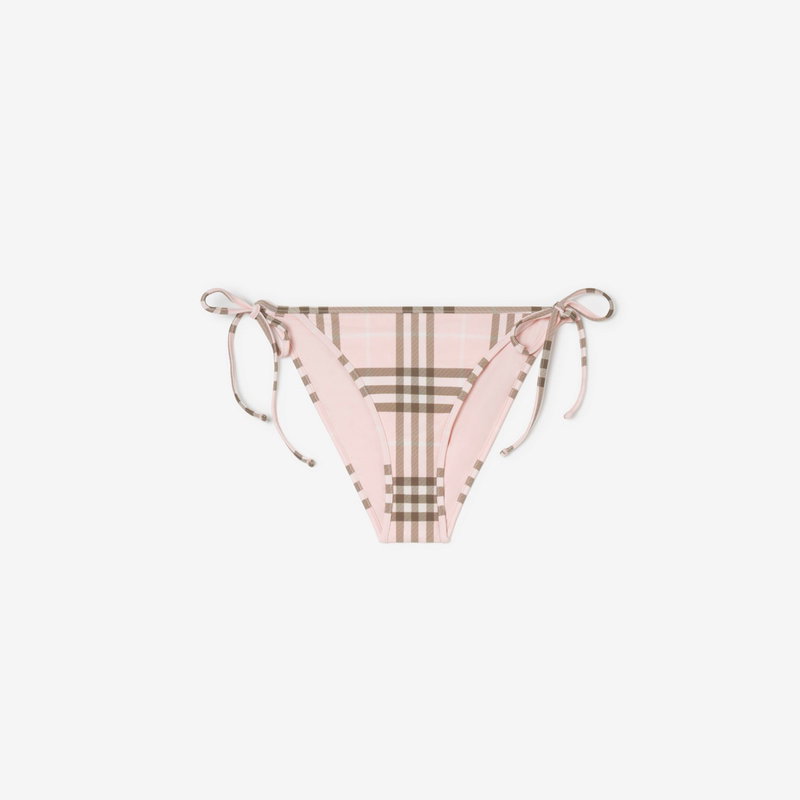 A pair of side-tie bikini briefs in stretch nylon, printed with the Burberry Check in soft mallow pink.