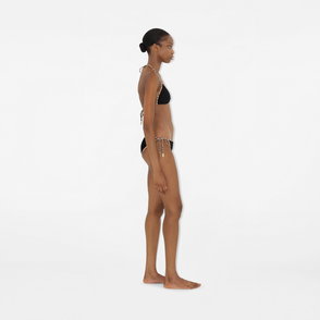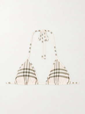 A halterneck bikini top in stretch nylon, printed with the Burberry Check in seasonal aubergine purple. Comes with a matching drawstring bag.