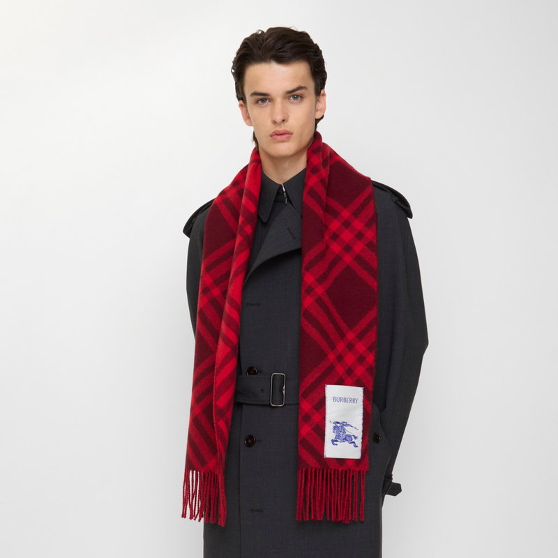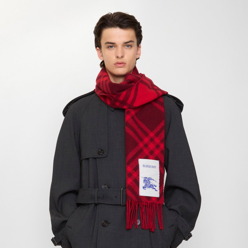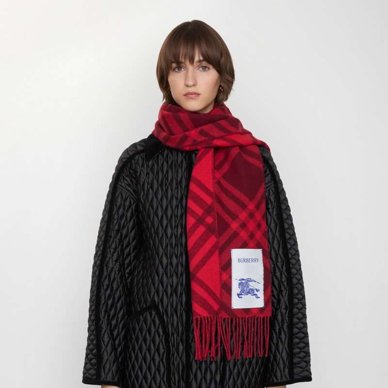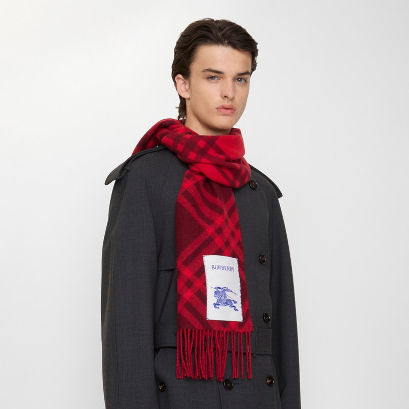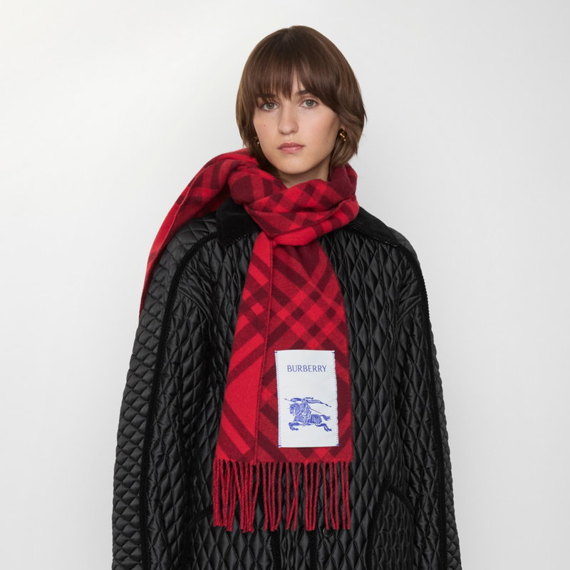 A scarf in double-faced cashmere, woven with a seasonal check at a Scottish mill founded in 1797.