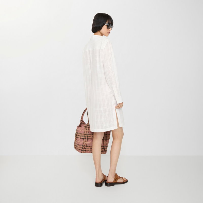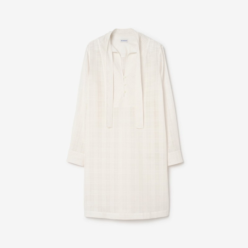 A long-sleeved dress made in Italy from cotton voile, jacquard-woven with the Burberry Check and embroidered with a tonal Equestrian Knight Design at the waist. The lightweight style is cut to a relaxed fit with side splits for added movement - ideal for warmer days or layering with swimwear.