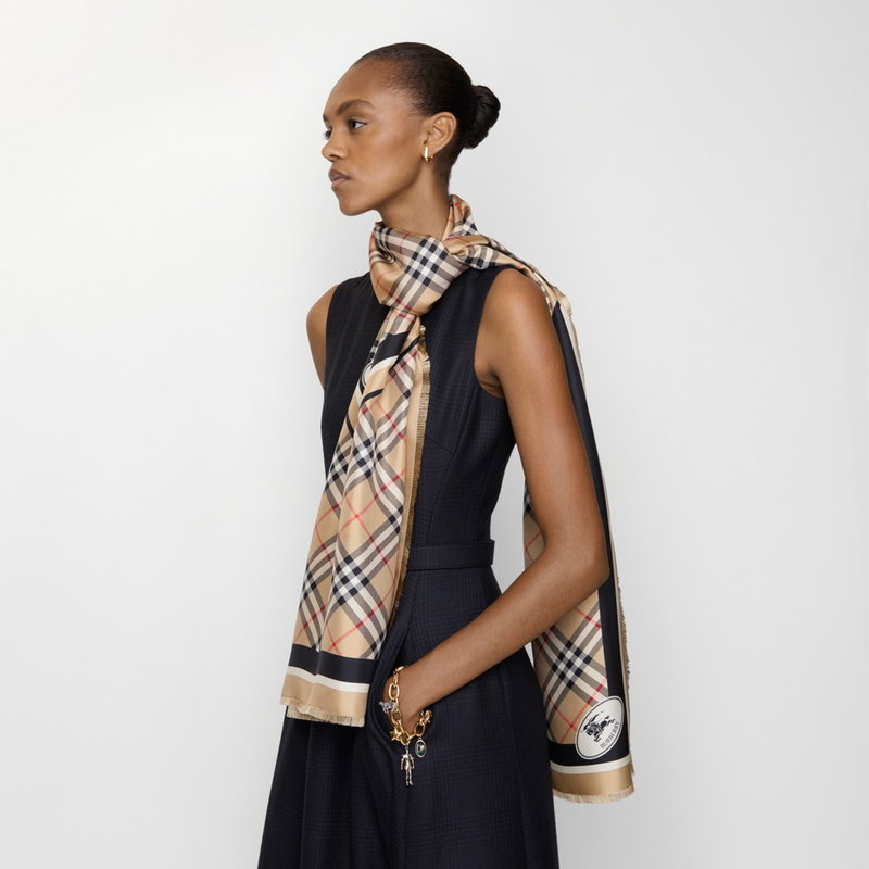 Check Knight Stamp Silk Scarf