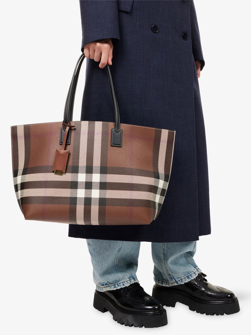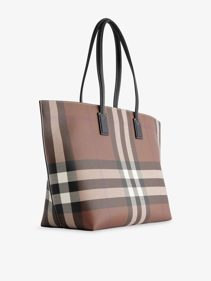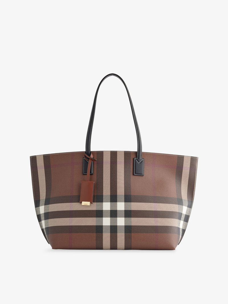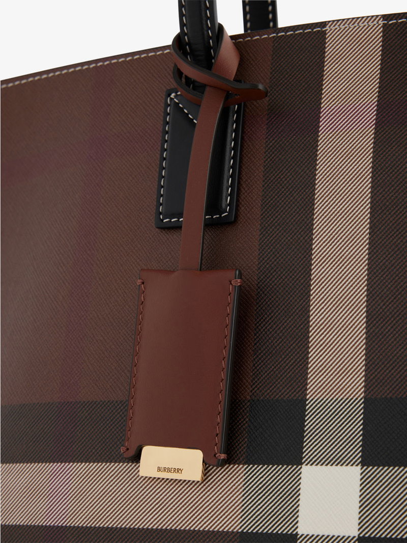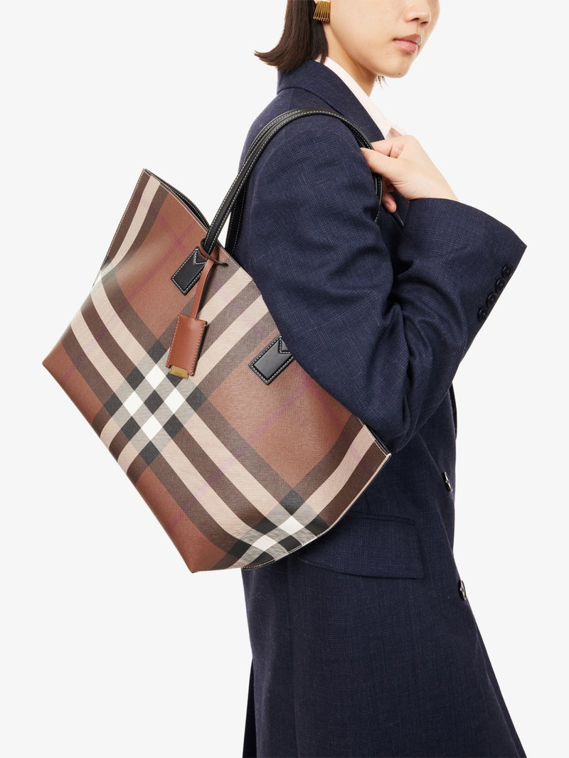 Check-Print Medium Faux Leather-Blend Tote Bag