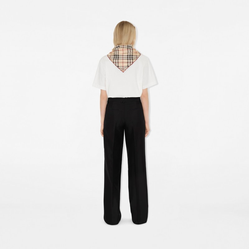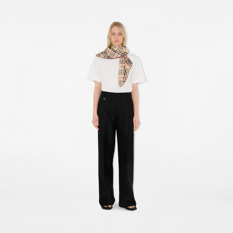 A scarf made in Italy from silk twill. The design is printed with the Burberry Check and framed with a solid colour border.