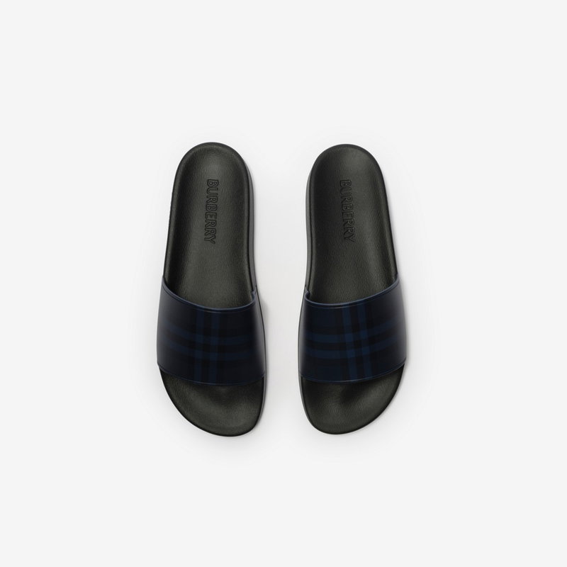 A pair of slides made in Italy, printed with the Burberry Check in timeless navy.
