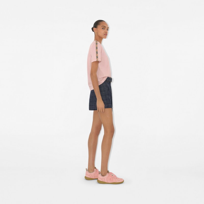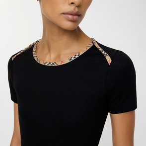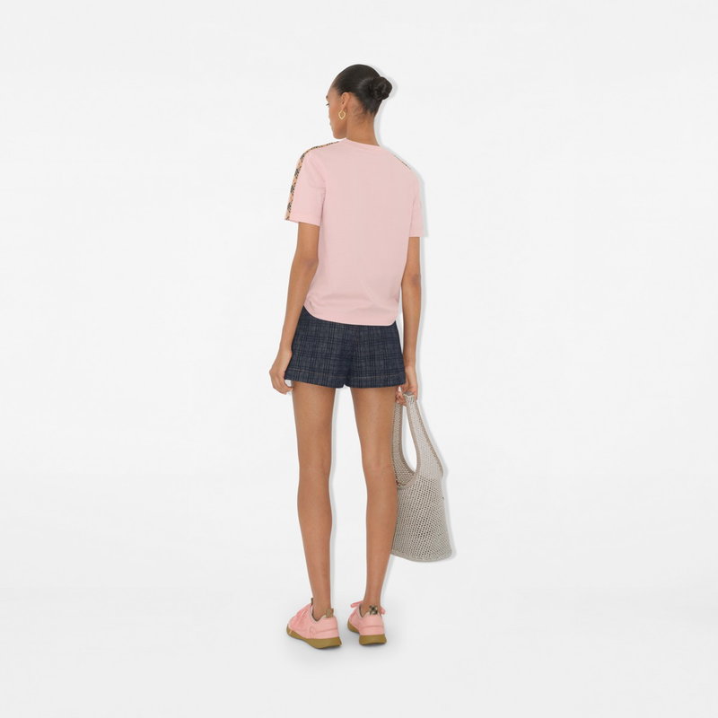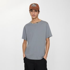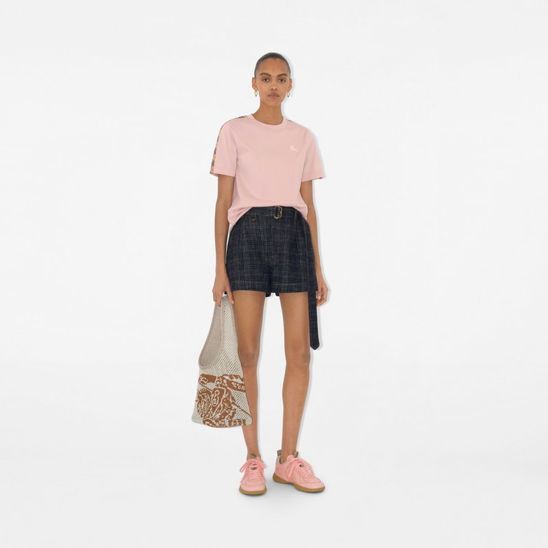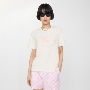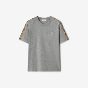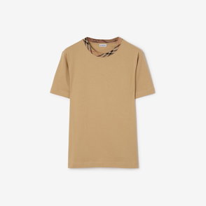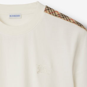 A T-shirt in lightweight cotton jersey, cut to a regular fit. The style is embroidered with the Equestrian Knight Design and framed with Burberry Check taping at the sleeves in signature archive beige.