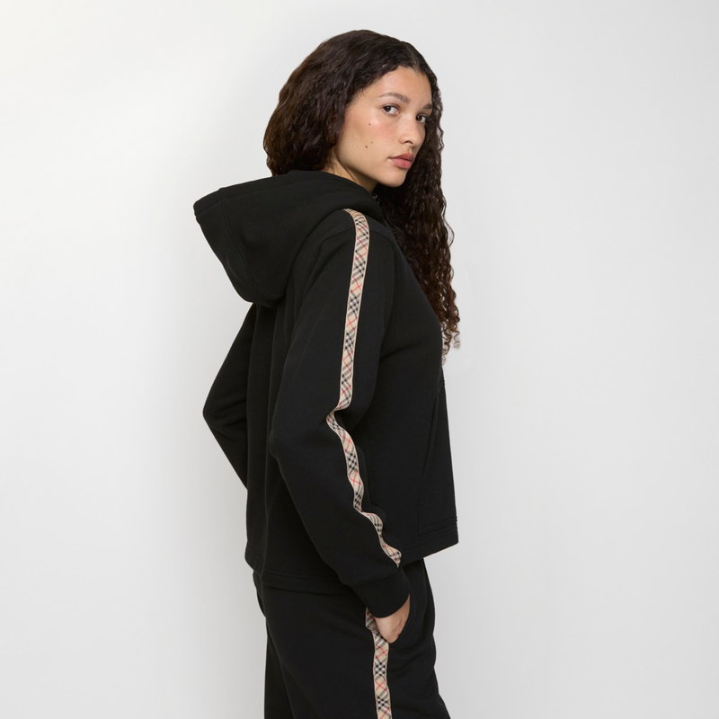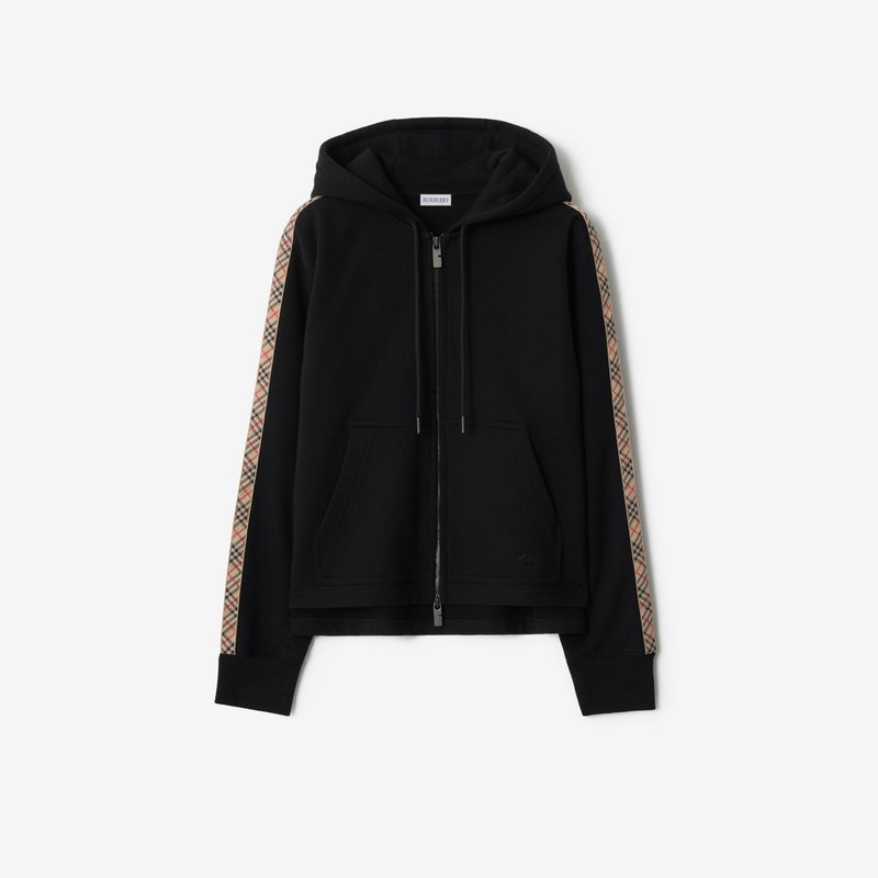 Check Trim Cotton Zip Hoodie