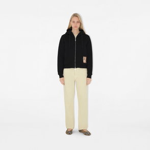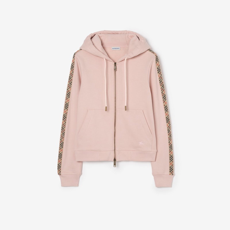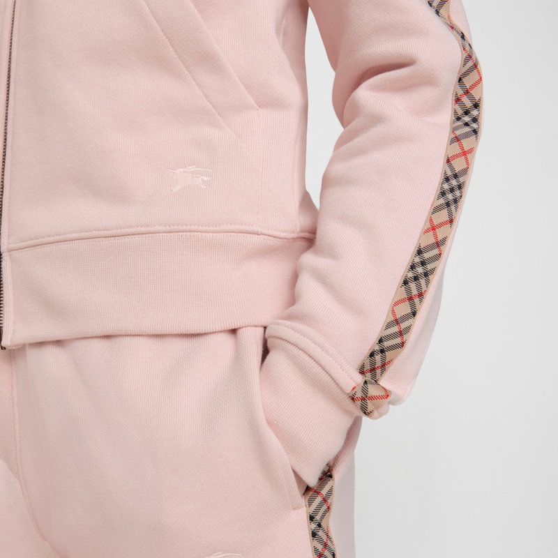 Check Trim Cotton Zip Hoodie