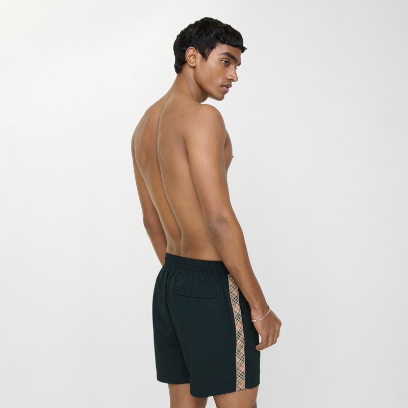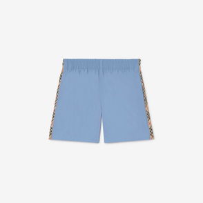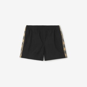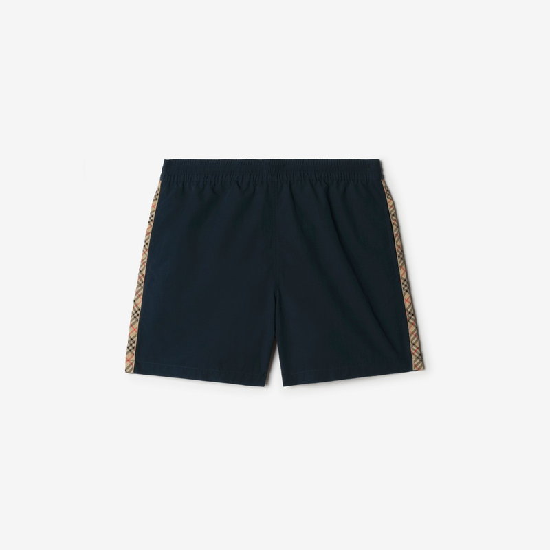 Drawcord swim shorts trimmed with the Burberry Check in signature archive beige. The style is cut to a slim fit and lined in mesh.