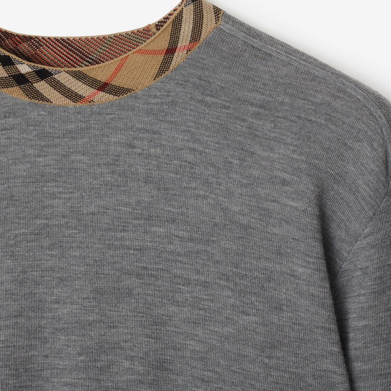Check Trim Wool Sweater