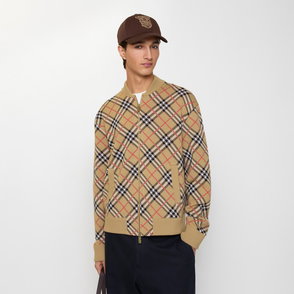 Check Wool And Leather Bomber Jacket
