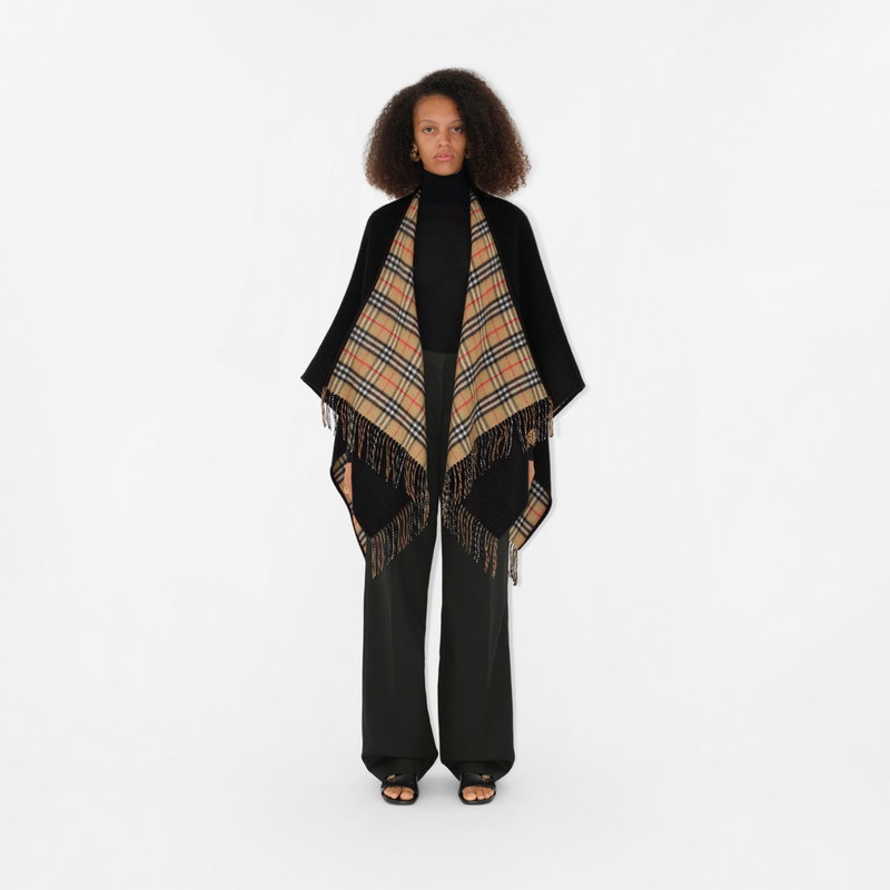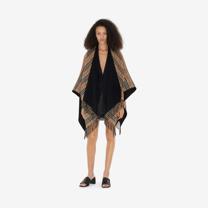 Check Wool Reversible Cape