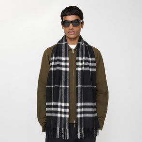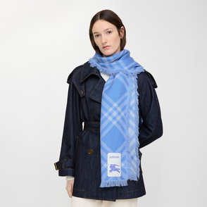 A wool scarf, woven in Norway with a seasonal check. The design features blanket stitching and is brushed for a soft finish.