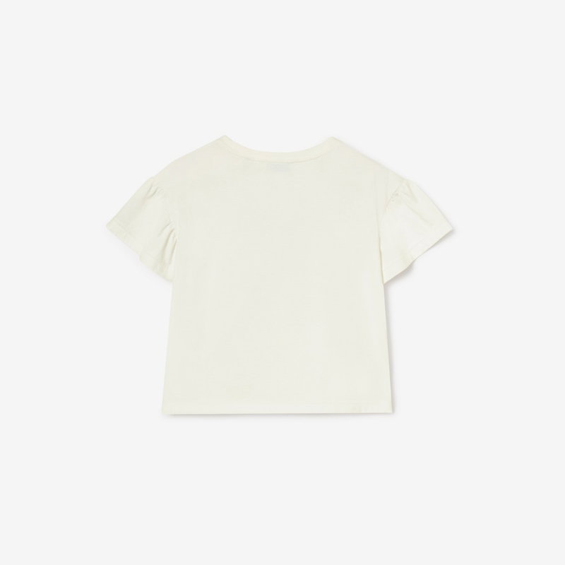 A crew-neck T-shirt in soft cotton jersey, shaped with frilled cap sleeves. The design is decorated with a Burberry Check bow in our signature sand beige colourway.