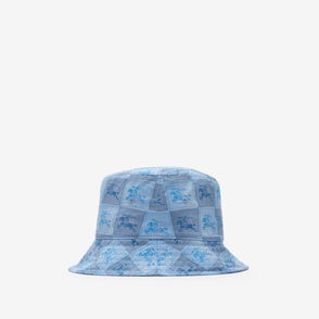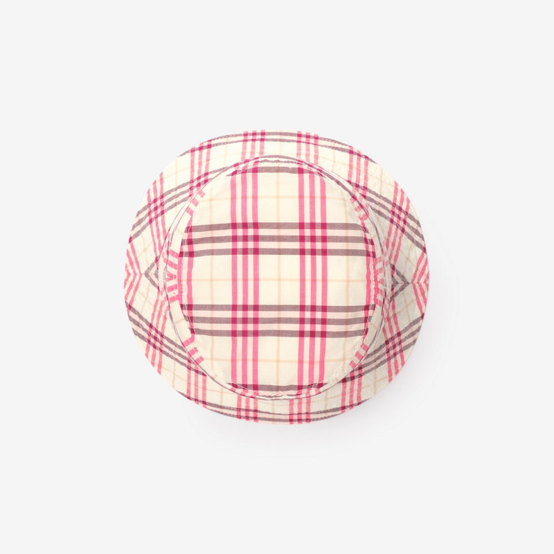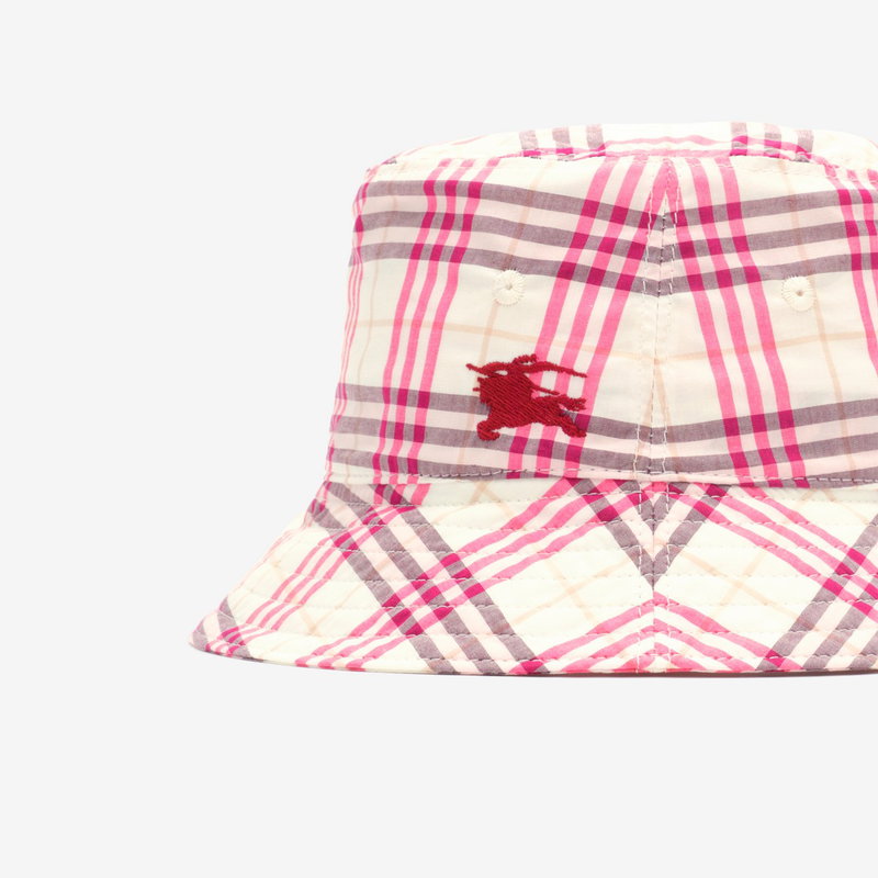 A bucket hat crafted in Italy from soft cotton, woven with the Burberry Check in seasonal aubergine purple. The lightweight style is embroidered with a tonal Equestrian Knight Design.