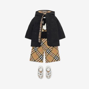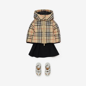 Childrens Check Cotton Hooded Coat