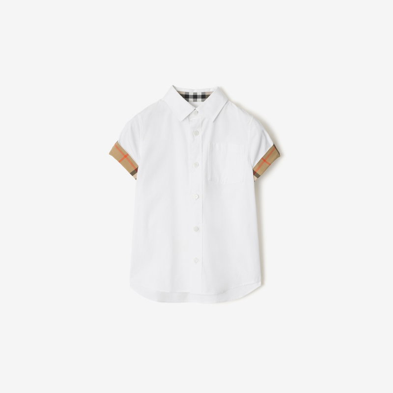 Childrens Check Trim Cotton Poplin Shirt