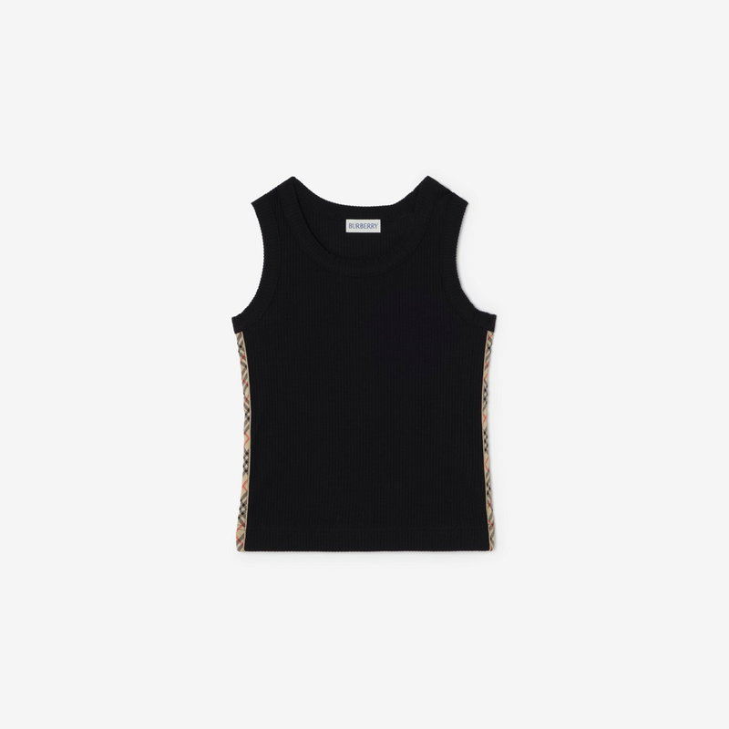 A sleeveless vest top crafted from ribbed stretch cotton. The design is edged with Burberry Check taping in signature archive beige.