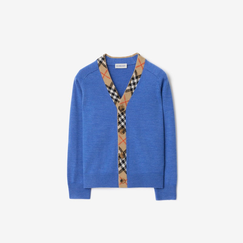 Childrens Check Trim Wool Cardigan