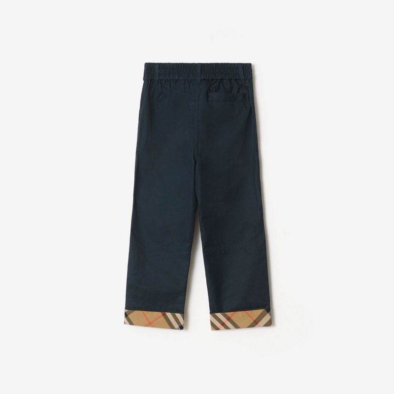 Childrens Check Turn-up Cotton Trousers