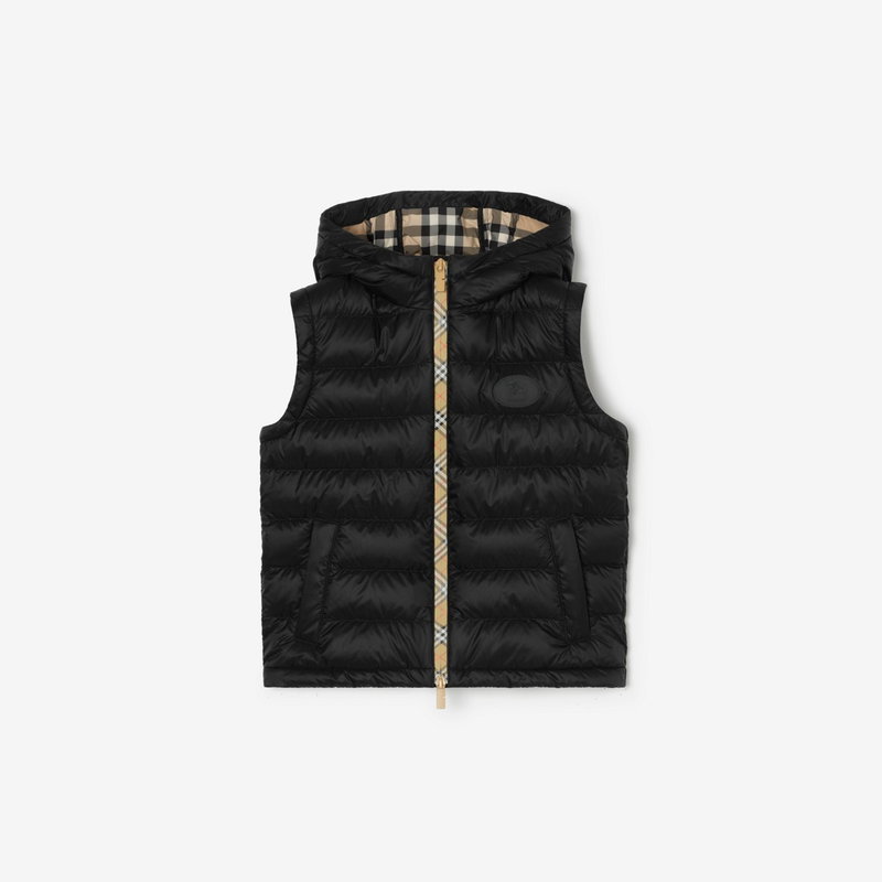Childrens Checker-tape Nylon Hooded Puffer Gilet