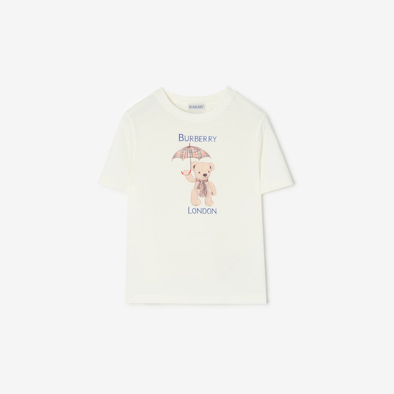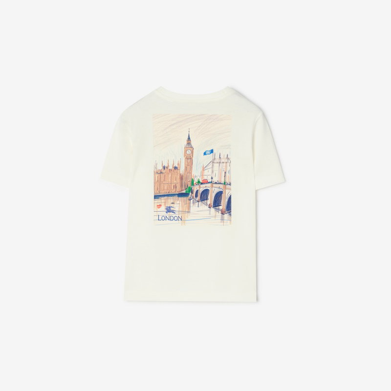 A crew-neck T-shirt in soft cotton jersey, printed with our logo and Thomas Bear holding a Burberry Check umbrella. The back features artwork depicting London's Westminster Bridge and the Houses of Parliament.
