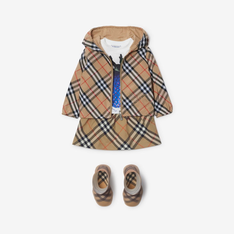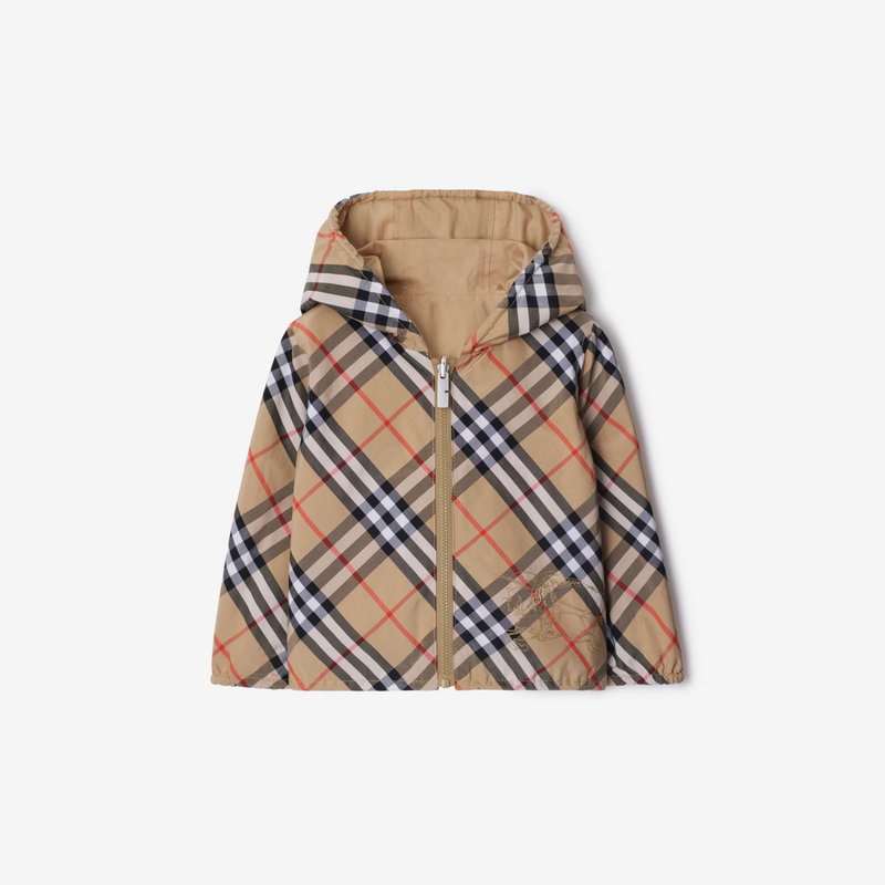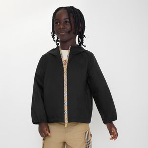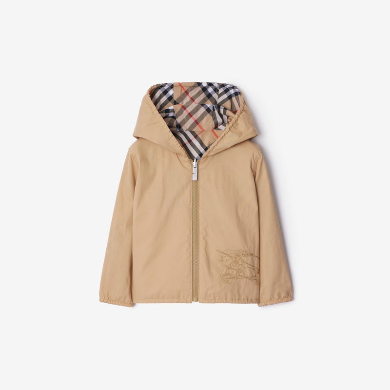 A hooded jacket in a cotton blend, reversing from Burberry Check to a solid colour. The lightweight style is embroidered with our Equestrian Knight Design on both sides. Part of Burberry Classics, wardrobe foundations with a unique Burberry slant.