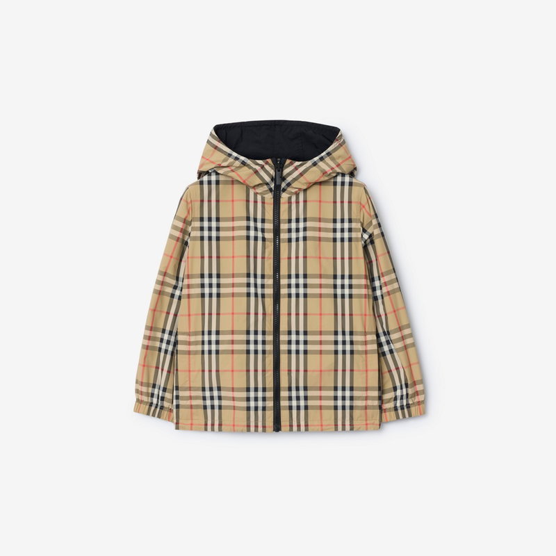 Childrens Reversible Check Hooded Jacket