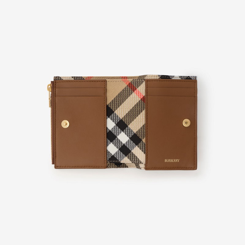 A timeless wallet made from grainy calf leather, finished with check-engraved hardware - a signature of our Cotswolds collection. The bifold design is partially lined in a cotton blend woven with the Burberry Check in our signature sand beige colourway.