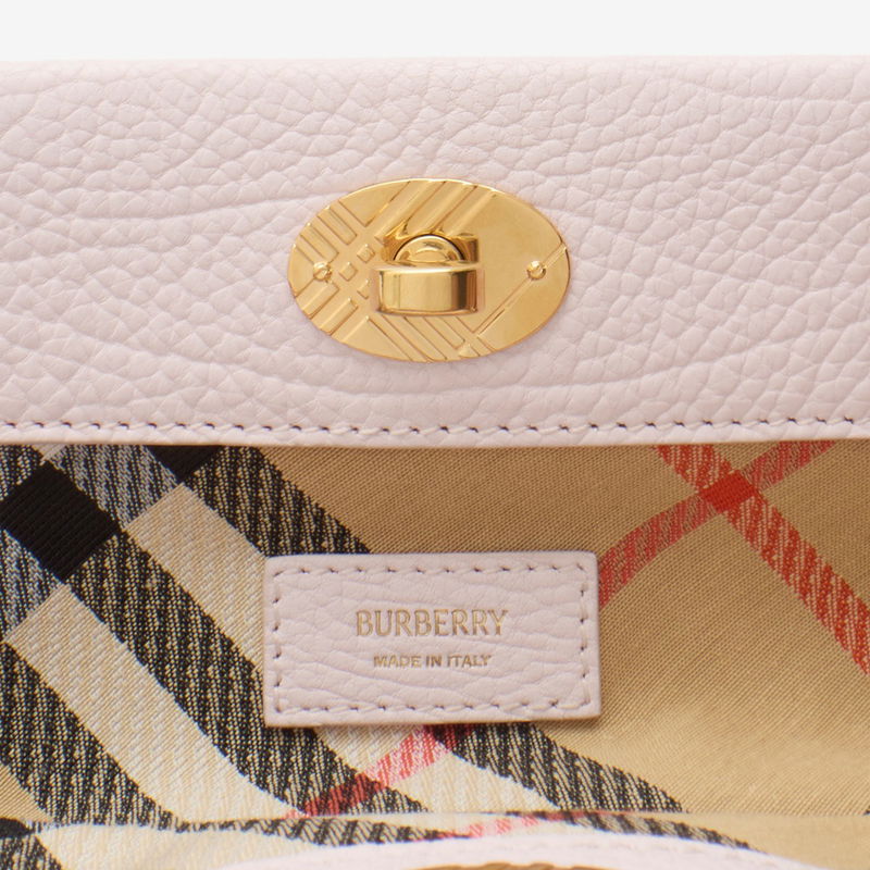 A timeless pouch made in Italy from grainy calf leather, lined in a cotton blend woven with the Burberry Check in their signature sand beige colourway. The design is detailed with a check-engraved closure and D-ring hardware inspired by the belt from our iconic trench coats.
